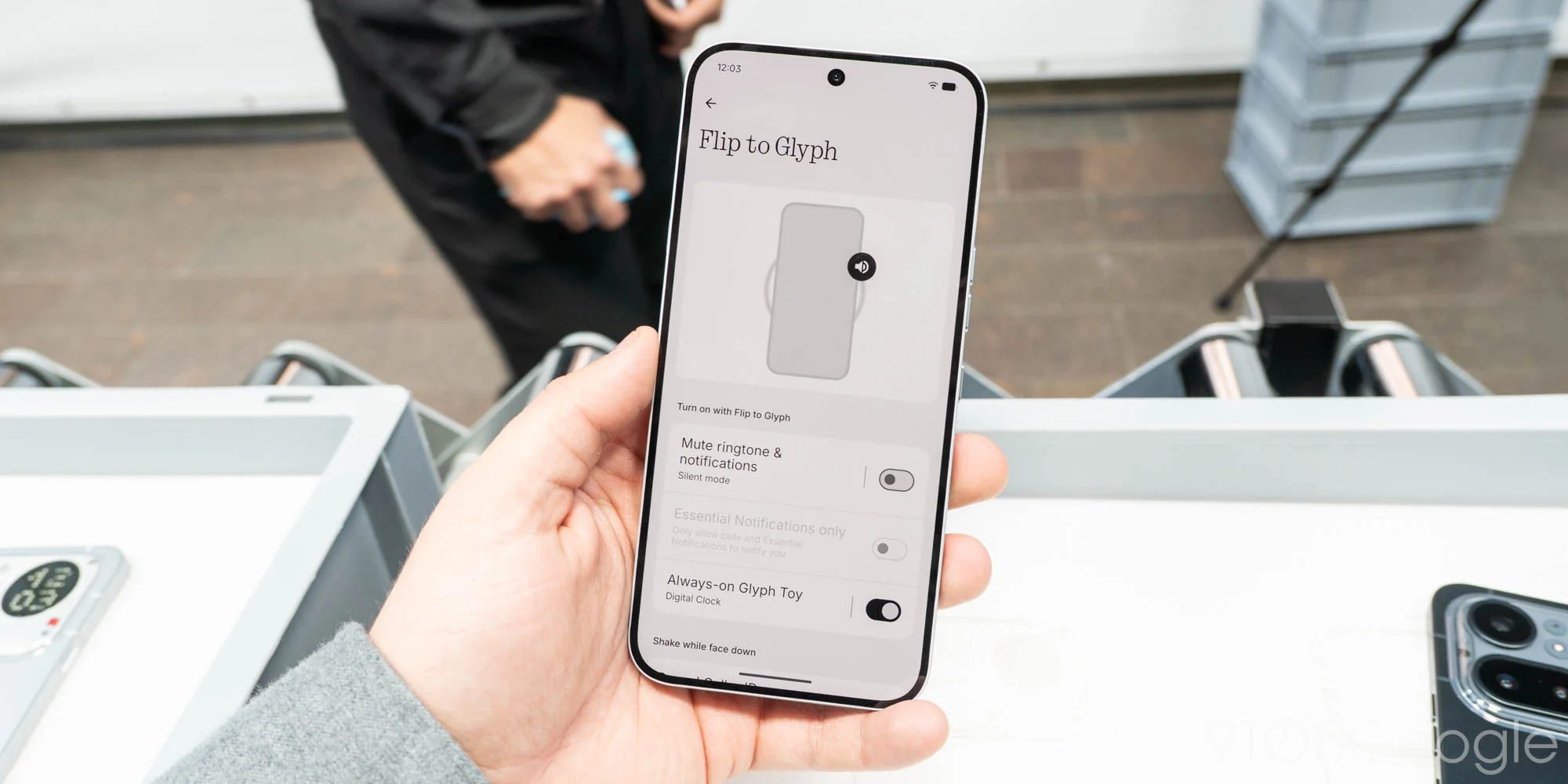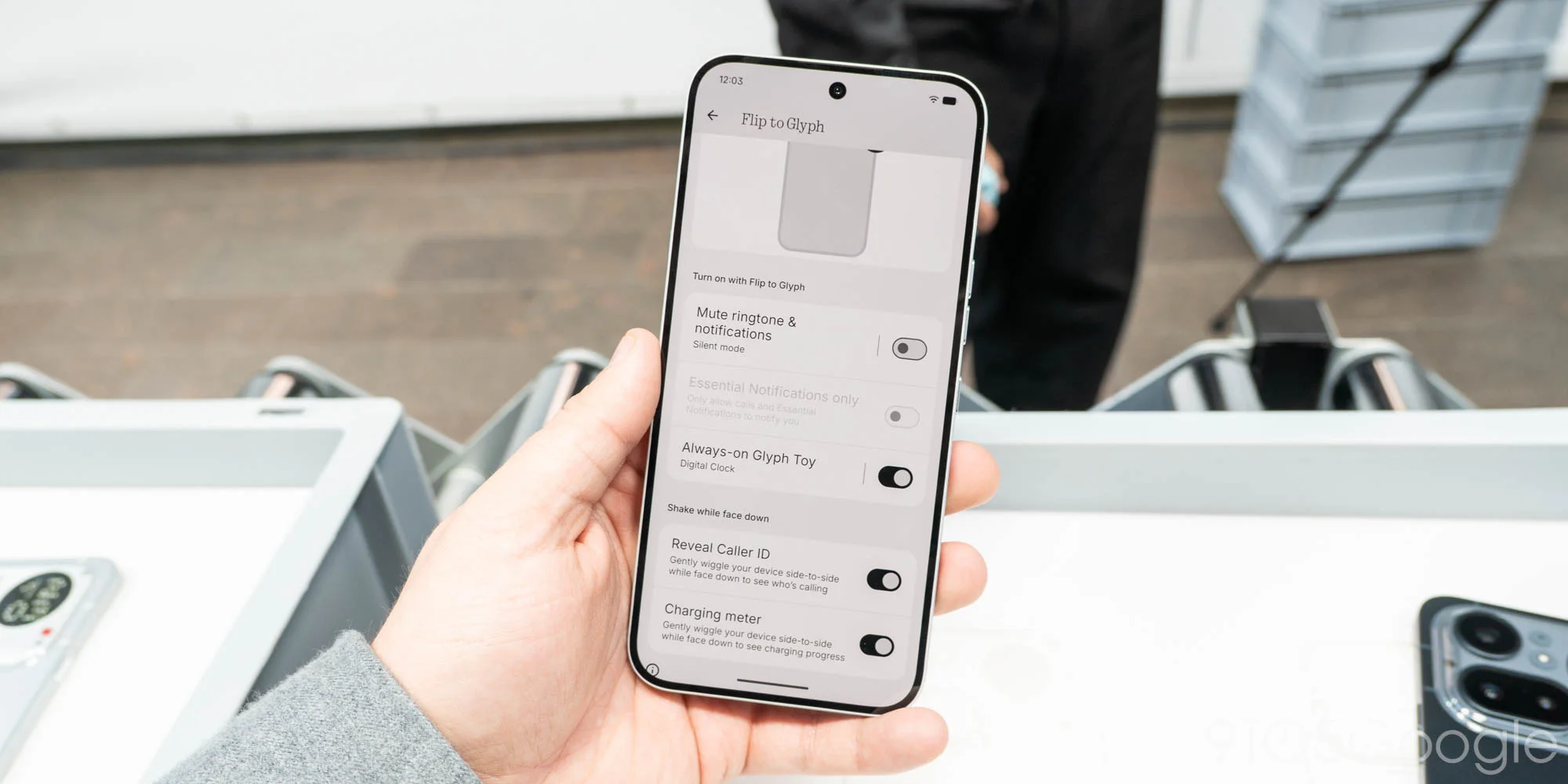 The biggest difference, though, is in interacting with the Matrix. Since Nothing has removed the “button” used to activate and interact with Glyph Toys, the only way to activate the feature is to flip the phone on its face (now using more durable Gorilla Glass 7i). You can select an always-on toy, or let it activate for things such as Live Updates from the likes of Uber and Google Calendar. You can also use Essential Notifications from select apps or show caller ID.
