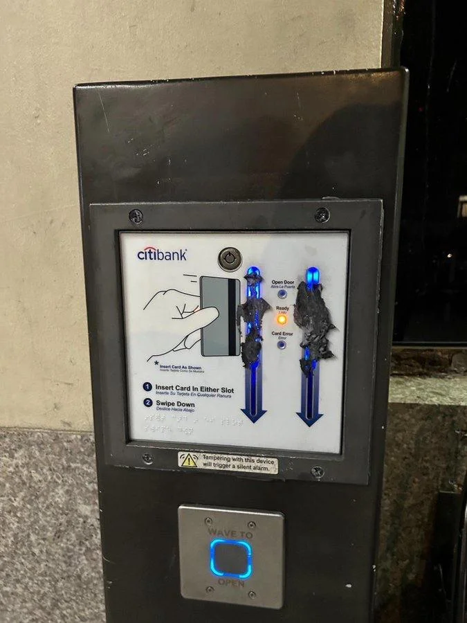 Figure 5: Activists insert epoxy into a Citibank card reader in New York City on October 7, 2024 (Source: Unity of Fields)