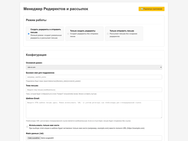 Website 1: Redirect and Email Manager (“Менеджер Редиректов и Email”)