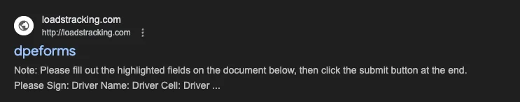 Notably, although Insikt Group was unable to retrieve the landing page associated with another Cluster 1–linked domain, loadstracking[.]com, indexed Google search results indicate that the domain likely hosted the same or a similar page as observed in Figure 7. DPE likely stands for “Direct Port Entry,” which is a system designed for exporters, allowing goods to be directly moved from their premises to the port and loaded onto the vessel for export without being transferred to a container freight station.