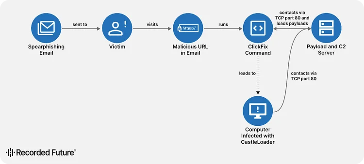 Figure 5: ClickFix attack flow used by TAG-160 (Source: Recorded Future)